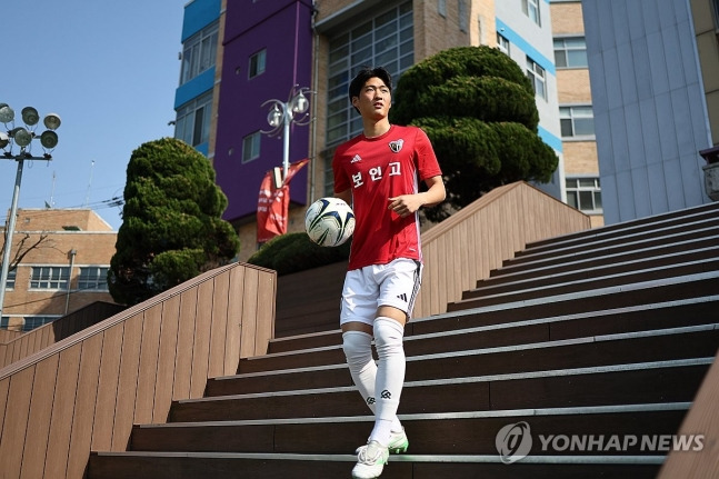 (서울=연합뉴스) 윤동진 기자 = 페예노르트(네덜란드)와 계약을 맺은 17세 미드필더 배승균(보인고)이 8일 서울 보인고등학교에서 진행된 연합뉴스와 인터뷰에서 포즈를 취하고 있다. 2025.4.8